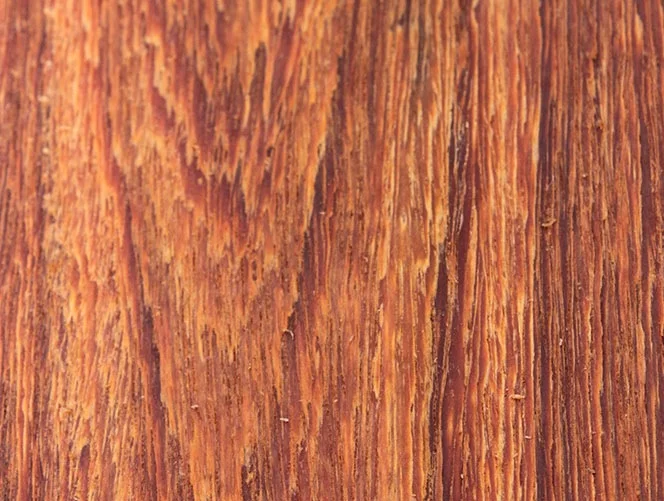 Color tones typically range between honey browns to reddish browns with some occasional chocolates. Also, the fine, light parenchyma ring patterns provide thin colored lines that will add to the character of your project once a high finish is applied. Despite its extreme density, it actually responds well to machine cutting and is considered easy to work with. Generally straight grain but with some occasional interlocking.